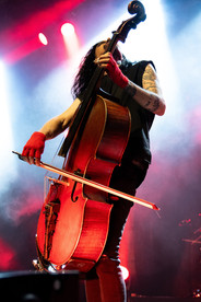 Later that night, once the clock hit 8:30, Metallica’s famed entrance song “The Ecstasy of Gold” by Ennio Morricone began to play on tape, preparing the audience for a Metallica-inspired performance they will never forget. Once the tape finished, Apocalyptica walked onto the stage as the crowd roared with excitement. Opening with “Ride the Lightning”, the first track from their recent album Plays Metallica, Vol. 2, the band took no time to ramp up the energy of the room. Starting off the song with slow melodies of the cello against intense drums and then gradually increasing the heaviness, the track made for a perfect start of the set. Composed of three classically trained cellists, Apocalyptica masterfully captured the original energy of the Metallica classic while adding an orchestral twist, replacing vocals with the sounds of the cello. The rhythmic instrumentals besides the drums are also created with cellos, which impressively sounded very similar to electric guitars. Lead cellist Perttu Kivilaakso shredded on the cello providing the melodies, and cellists Eicca Toppinen and Paavo Lötjönen provided the rhythms and bass respectively. Touring drummer Maako Kaakkuriniemi tied together the performance with his thunderous beats. Right after “Ride the Lightning”, they performed the famed “Enter Sandman”, already getting the crowd to sing along despite the performance being completely instrumental.