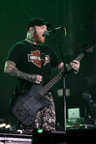 The next headliner to take the stage was yet another legendary early 2000s metal band, Killswitch Engage. Right when they started playing their first song of the night, the 2004 track “Rose of Sharyn”, fans already began to crowdsurf again. Throughout the set, the band had many great moments of crowd interaction, such as vocalist Jesse Leach jumping off stage to the barricade to high-five fans during their second song, and guitarist Adam Dutkiewicz going all the way up to the seats to perform. While performing their biggest hit “My Curse”, Jesse even walked through the middle of the pit for the majority of the song. As the band played many fan-favorite tracks that span their whole discography, the audience’s energy was still unwavering; even the mosh pit on the lawn was still active and going strong.