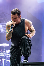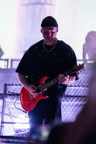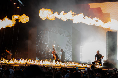 Soon after, Parkway Drive kicked off the first headlining set of the night. Having been formed back in 2003, the Australian metal icons proved that they still remain one of the biggest influences in the metalcore genre to this day. Starting the set off with a bang, they performed their 2022 track “Glitch” as bursts of pyro blasted from the stage. The band’s electrifying riffs, dynamic rhythms, and frontman Winston McCall’s powerful vocals had the crowd completely immersed in the performance, with tons of moshing and crowdsurfing happening throughout the set. Winston even pointed out that a mosh pit was forming on the lawn and was even more intense than the one on the floor.