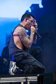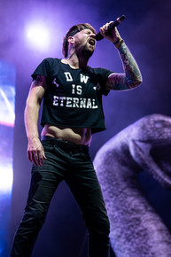 Summer of Loud’s fourth and final opener was Australian metalcore pioneers The Amity Affliction. As soon as they started playing the first few notes of their hit “Pittsburgh”, crowdsurfers already started making their way to the front. Even with a broken ankle, vocalist Joel Birch’s unrelenting energy quickly revitalized the crowd, with constant moshing and crowdsurfing happening throughout the set. During the third song, “Drag the Lake”, the crowdsurfing got so intense that multiple people were surfing at once. After a set full of fan-favorites, the band concluded with “Soak Me in Bleach”, and the crowd’s voices spread throughout the amphitheater as they sang along to every word.