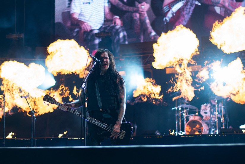 If you stood close enough, you could feel the warmth from the pyrotechnics on stage. The metalcore/ rap metal band enjoys a flashy atmosphere from the fire on stage, to playing skits on the screen behind them. Even showing Tiktoks from people who don’t like Falling In Reverse. The band also played “Popular Monster”, “All My Life” where the boys switched to cowboys hats, “Game Over” a song Ronnie likes to call “the worst song I’ve ever written” and of course “The Drug In Me Is You” because it “still REVERBERATES”. The night ends with Tech N9ne returning to the stage as he is featured on the song “Ronald”, joining the band to rap his part. Fist bumps are shared and Falling In Reverse takes a selfie with the whole crowd.