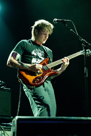 At 9:45pm, the lights began to dim for the final time that night. Soon enough, the lights shined purple and green as the Goosebumps theme song began to play. As the theme was playing, Joyce Manor walked onto the stage as the venue erupted with cheers. The band opened with the existential “I Know Where Mark Chen Lives”, the opening track of their new album I Used to Go to This Bar. From the very start of the set, multiple fans already started crowdsurfing, and this never slowed down anytime soon. Joyce Manor’s songs, usually only about 2 minutes long, create a sense of urgency and excitement, which was clearly seen throughout the crowd. Frontman Barry Johnson’s raw vocals and upbeat riffs captivated the fans, as nearly everyone was off their feet and moving. Guitarist Chase Knobb delivered intricate, emo-inspired solos, and bassist Matt Ebert served up fast-paced rhythms to ensure the energy never died down.