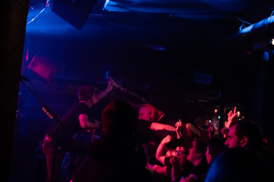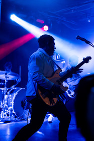 The first band of the night was Philly’s own Night Sins. Heavily inspired by 80s darkwave music, the sound of synths flourished throughout their set along with heavy bass lines and drumbeats, creating a dark atmosphere accompanied by moody lighting. To top it all off, vocalist Kyle Kimball delivered deep, low vocals characteristic of the post-punk surge of the 80s. The band’s most recent release is their 2024 EP, A Silver Blade in the Shadow, from which they performed a few songs. Being native to Philly and having performed at Underground Arts in the past, it was clear that many local fans gathered to support Night Sins as quite a few people were dancing throughout the whole set, and the performance certainly turned much of the crowd into new fans as well.