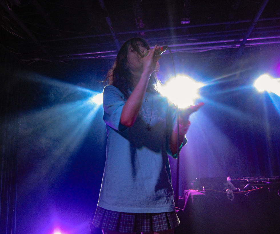 Ninajirachi then briefly played ‘Wayside’ before moving into ‘Infohazard,’ where again, the crowd was desperate to land those high “Oh’s” that made us all sound like chipmunks. Outside of that, everyone was completely ready for what ‘Infohazard’ was about to bring, so much so that I’m so close to calling it the most anticipated song of the night, though I believe a song later in the setlist holds that title. Moving away from ‘Infohazard’s theatrical and near-dramatic atmosphere, Nina threw on ‘Ice u out’, a track that sonically feels less like a statement piece. From this song, I can vividly remember Nina doing these wildly dramatic on-beat claps during “I want to be with you”. She did this style of claps multiple times throughout the night, but it was here where the memory really stuck, and I’ll never be able to listen to ‘Ice u out’ without thinking of those darn claps.