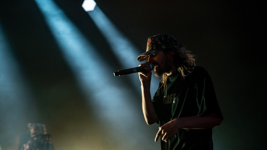 The show's first opening act was an upcoming rapper named Cursed. I hadn’t heard of him before this show, but I quickly found myself loving his music. He’s one of the young artists signed to Doomshop Records, which is made apparent from the tag at the start of most songs that says “Doomshop MF”. The production of his songs and the beats used were some of the most unique I had ever heard. Cursed brought energy that the crowd matched, and he set the tone for what was to come throughout the night.