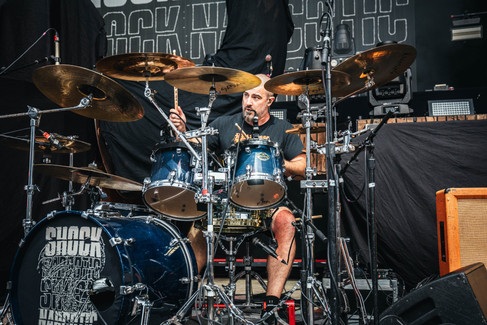 Pantera pulled out all the stops and played all of their hits including "5 Minutes Alone", "Mouth For War", "I'm Broken", This Love", "Cowboys From Hell", "A New Level" and of course, "Walk". Every member of the band was on point and the songs sounded crispy and clean as ever. Phil Anselmo sang with sheer aggression and and can scream with power and ferocity, and with little to no effort too. As for Zakk Wylde, I mean, there isn't much to say about him that hasn't been said before by many others. He carries the spirit of Dimebag Darrell with him in his guitar playing while also being himself as well. I remember when the rumors of Pantera coming back first came out and that Zakk Wylde was rumored to be part of the lineup and thought, "yes"! I knew immediately just from seeing videos of him playing and seeing him with Black Label Society live that he would be the perfect fit to fill Dimebag's shoes. If you have either seen him play live or listened to his work, be it either with Ozzy Osbourne or his own band, Black Label Society, then you would agree with me that he was the perfect fit and it was clear to me he does what he is known for, with Pantera, but also honors Dimebag. Charlie Benante successfully carried the spirit of Dimebag's brother, Vinnie Paul as well. He had the groove and the power in his playing, something I have known, having seen him with Anthrax. His drum set was on a riser in the back in the middle of the band's amps. He had a massive drum set with two bass drums that had Dimebag and Vinne on each drum head.