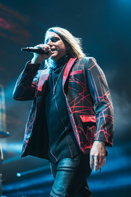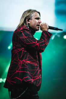 Three Days Grace made their way to the stage from the crowd wearing yellow boxing robes to the LL Cool J song, "Mama Said Knock You Out" which slowly transitioned into the intro the One-X song "It's All Over". It wasn't long after where members Brad Walst, Neil Sanderson and Barry Stock appeared on stage and the fans got hooked the second Walst played the iconic "Animal I Have Become" bass intro. Everyone was off their feet and sang every single word with co-lead vocalists Adam Gontier and Matt Walst. Both Adam and Matt shared verses and sang together on the chorus and gave each other, as well as the other members, a standing ovation. The next song was the Matt Walst era song "So Called Life" from the 2022 album Explosions and Matt largely took center stage vocal-wise but that didn't stop Adam from throwing some vocals here and there. The band pulled out all the stops when it came to their hits, with songs like "Home", "Pain", "The Mountain", "I Hate Everything About You", "The Good Life" and "I Am Machine", "Break", and "Time of Dying". Throughout the whole night, Matt was leading the crowd into "THREE DAYS GRACE!" chants while the logo flashed on the LED Screen. On certain songs like "Break", "I Am Machine", and "Riot", Adam and Matt sang their own separate verses and sang together on the chorus while also seeking the help of the voices from the crowd as well who were happy to assist. For the performances of "Home", "I Hate Everything About You", "Pain", "Time of Dying" and "The Good Life", Matt picked up a guitar and provided rhythm guitar and backup vocals, allowing Adam to take the spotlight, only for Adam to return the favor and pick up the guitar for the Matt Walst era songs "The Mountain" and the first song Three Days Grace released with Matt; "Painkiller". Before getting into "The Mountain", Adam gave a brief history of the band and the albums they released over the years, leading into him explaining he left the band in 2013 which was met with boos from the crowd. He then explained, and praised, how he saw the band kept going and thanked Matt for helping keep the band afloat and introduced "The Mountain" which was what the band kept climbing all these years.