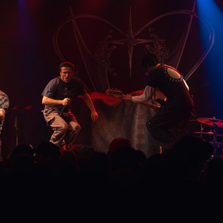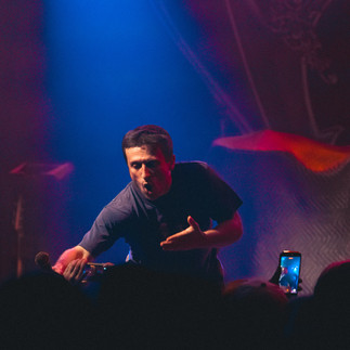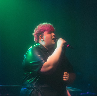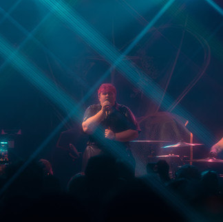 By the time Magnolia Park took the stage, space inside House of Independents was at a premium. The crowd was tightly packed, with barely any room to move. The lights cut out abruptly, replaced by a wash of blood red light over the stage. The ‘Nights After Vamp’ emblem on the mic stand gleamed glistened in the lights.